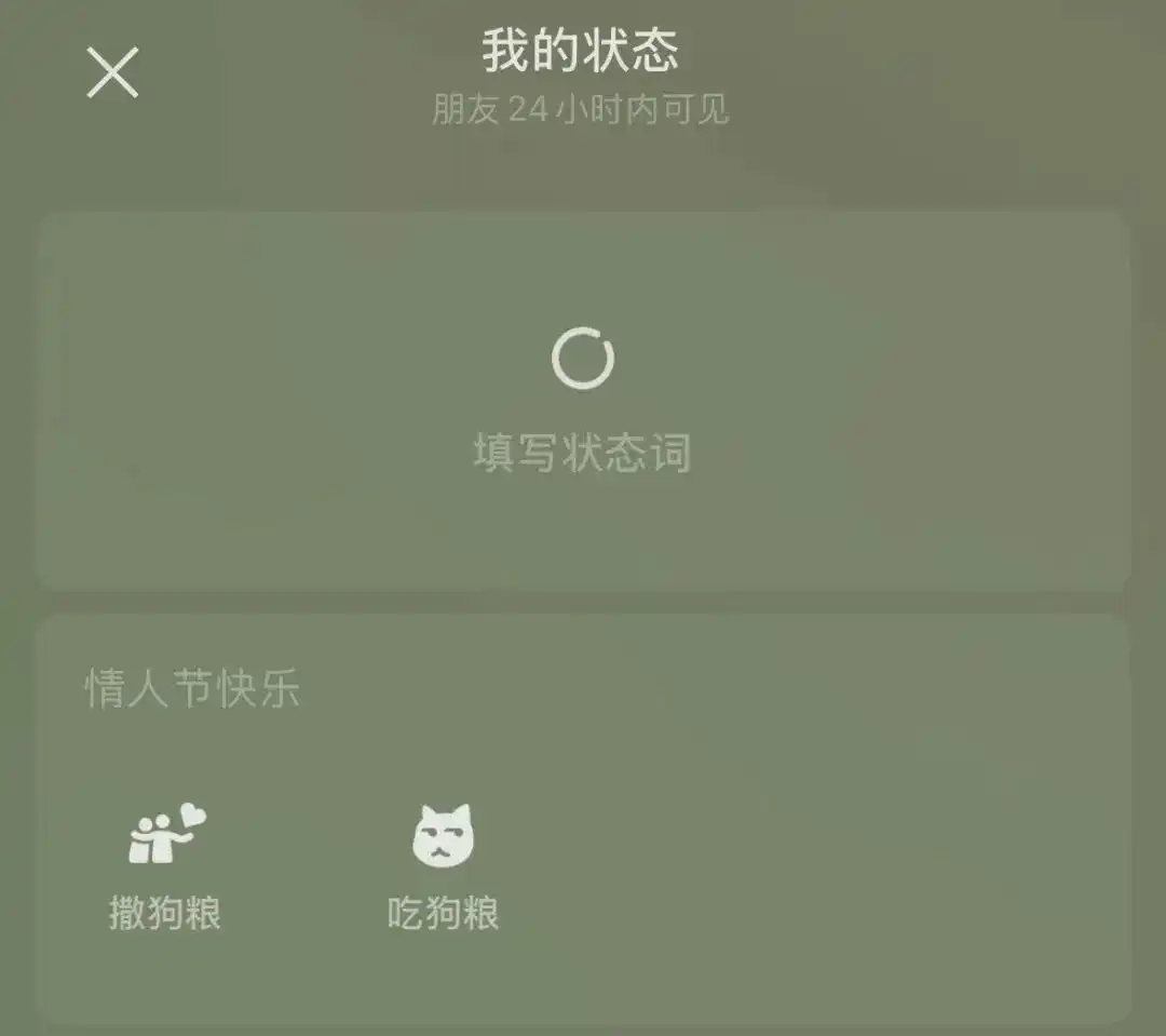 同时,微信今天还同步上线了两个限定状态,分别是“撒狗粮”和“吃狗粮”,这也是三个节日中必备的“保留节目”。