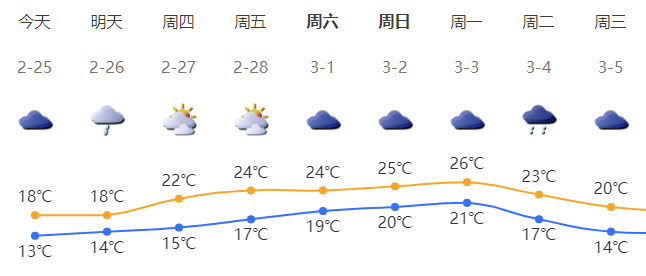 深圳今日阴天间多云,有分散小雨;气温13-18℃;东北风2-3级;相对湿度50%-80%。