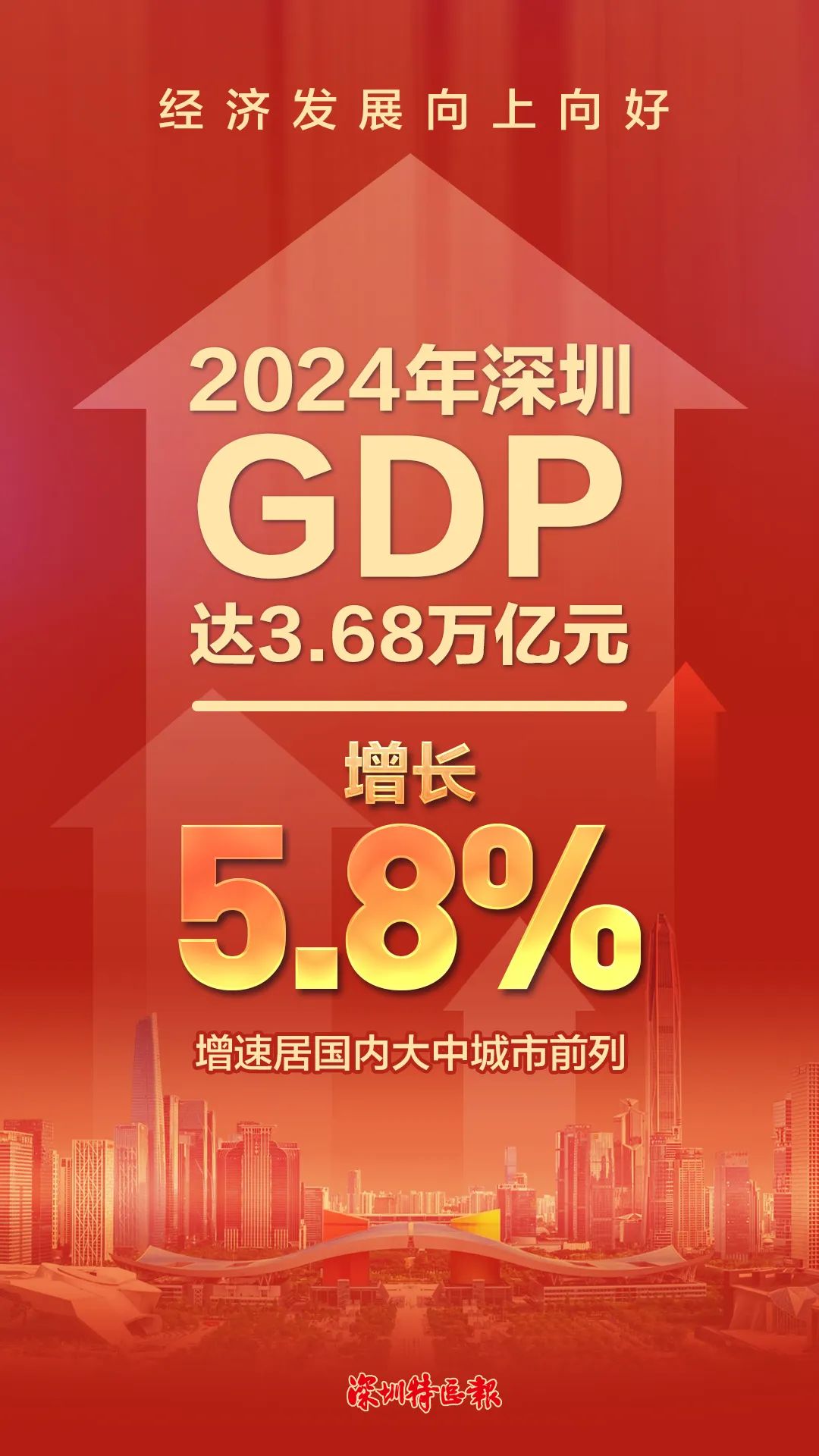 ● 据悉,2024年深圳地区生产总值达3.68万亿元、增长5.8%,增速居国内大中城市前列。详情>>