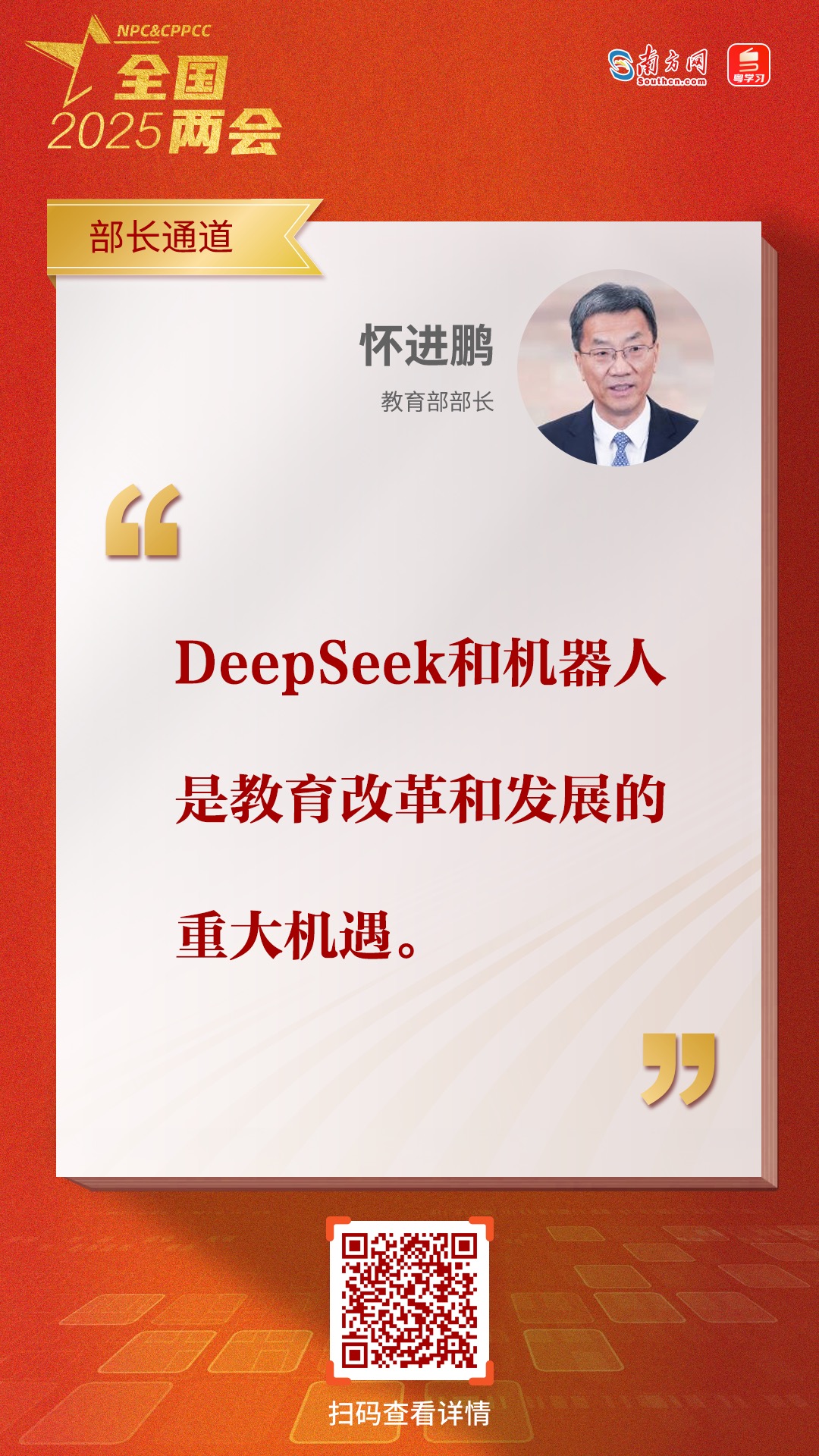 怀进鹏表示,DeepSeek和机器人在最近一段时间引起国内外的广泛关注,从一个方面也说明了中国科技创新和人才培养的效果。但与此同时它也向我们提出了,面对重大科技变化和产业变革,我们的教育如何应对。历史上每一次重大科技革命和产业变革,都对社会提出了特别重要的需求,尤其是对教育,所以DeepSeek和机器人是教育改革和发展的重大机遇。