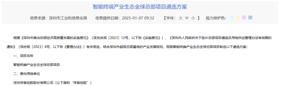 ●深圳传音控股股份有限公司拟6.5亿元买地,在深圳设全球总部。