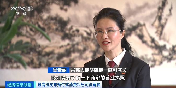 最高人民法院民一庭副庭长 吴景丽:比如说要了解一下商家的营业执照、经营资质和它的实际营业情况,并且保存好双方之间的合同收据和转账记录等,一旦商家卷款跑路,就向行政监管部门投诉或者向法院起诉,要求赔偿或退款。