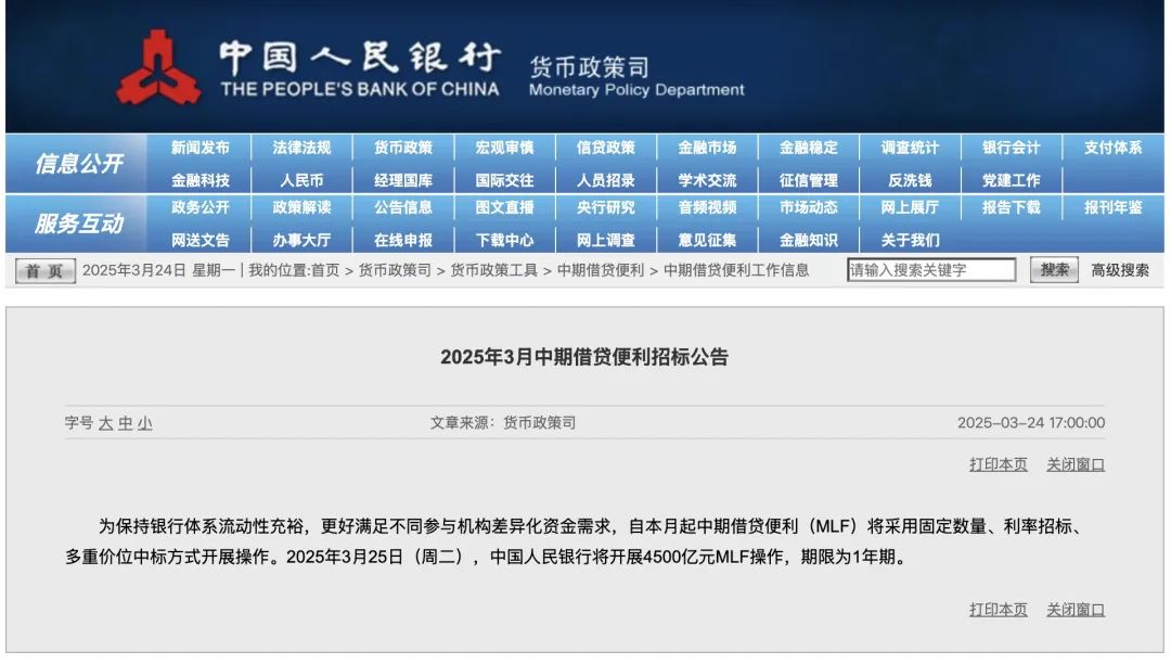 ● 3月25日,中国人民银行将开展4500亿元MLF操作,期限为1年期。
