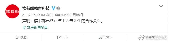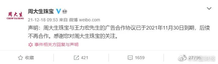 随后,读书郎、周大生珠宝等多个品牌也宣布和王力宏解约或不再合作。