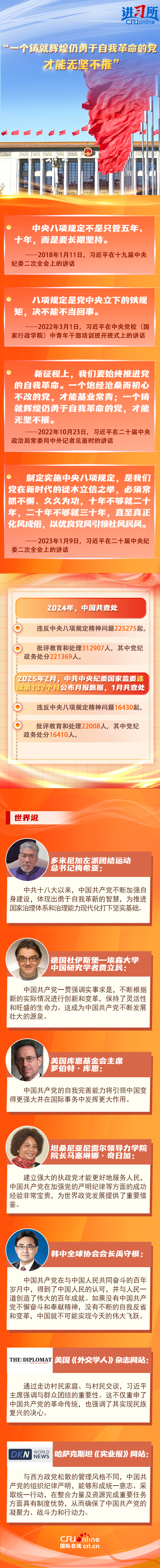 从党的群众路线教育实践活动到党史学习教育,再到党纪学习教育……中共有计划系统地在党内展开一系列学习教育。国际人士认为,中国共产党勇于自我革新的智慧和严明纪律的成功经验,为世界政党发展提供重要借鉴,并将助益中国在国际事务中发挥更大作用。