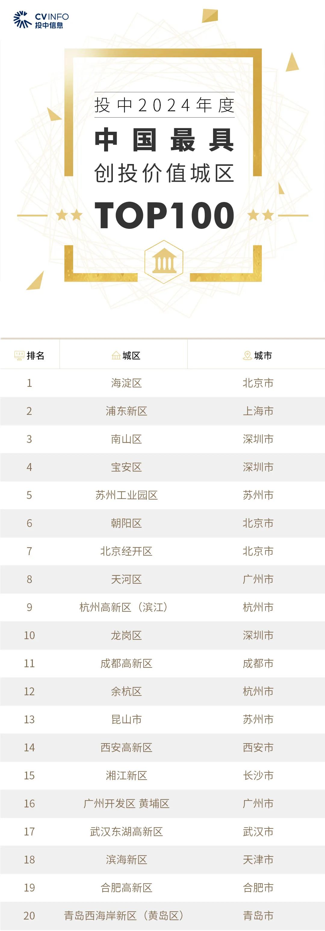 ● “投中2024年度中国最具创投价值城区榜单”发布,深圳市三个区进入Top10城区,数量在全国各大中城市中高居第一。
