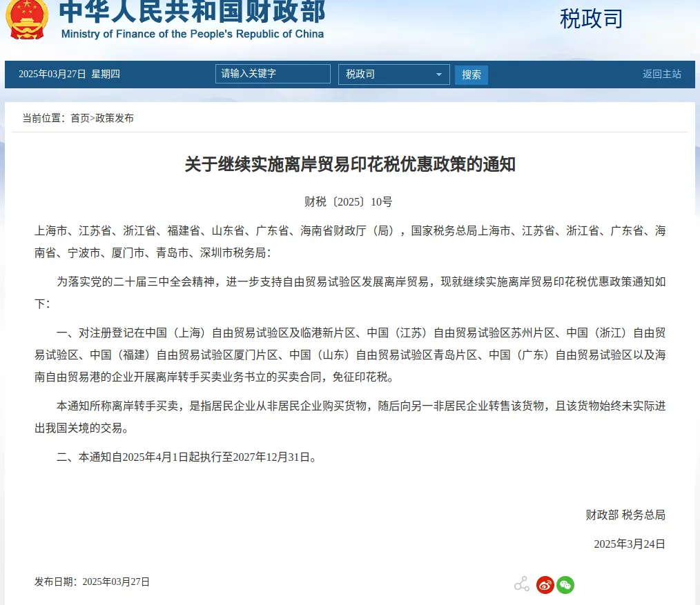 ● 4月1日起免征印花税!离岸贸易新政落地深圳。