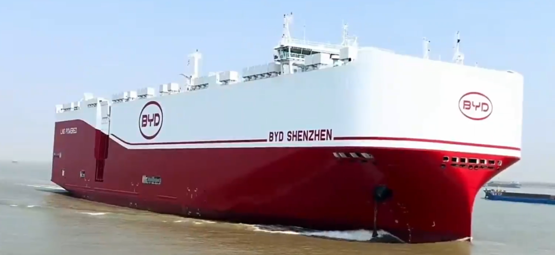 ● 近日,全球最大的汽车滚装船“比亚迪深圳号”在江苏海域展开试航。