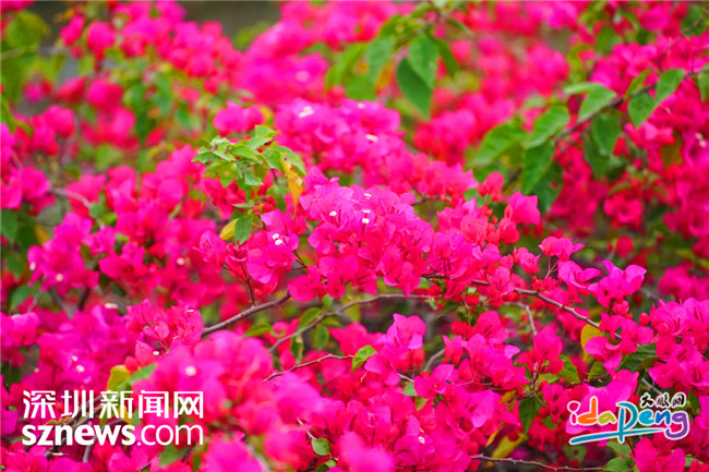 沿着蜿蜒的环形跑道漫步,格桑花和簕杜鹃以蝶舞之姿铺展成彩色地毯,与初绽枝头的紫花风铃木,形成最美的春日图景。