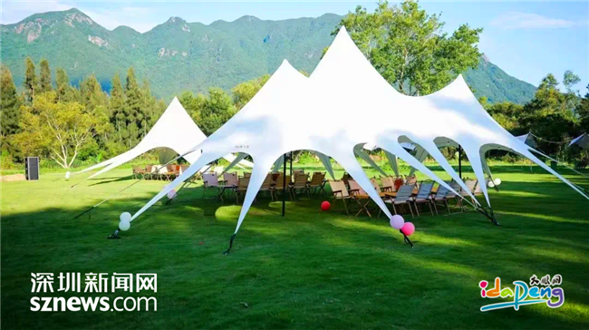 漫叙咖啡店外还设置了天幕帐篷区,一张天幕、一桌美食、三五好友,便可解锁“公园里的诗和远方”。