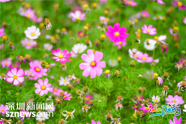 出门踏青怎么少得了赏花?春分拂晓,禾塘山水公园的千亩花海在晨光中苏醒,格桑花粉、白、紫花瓣深浅层叠,如繁星坠入绿野,在暖阳下织就斑斓绸缎。