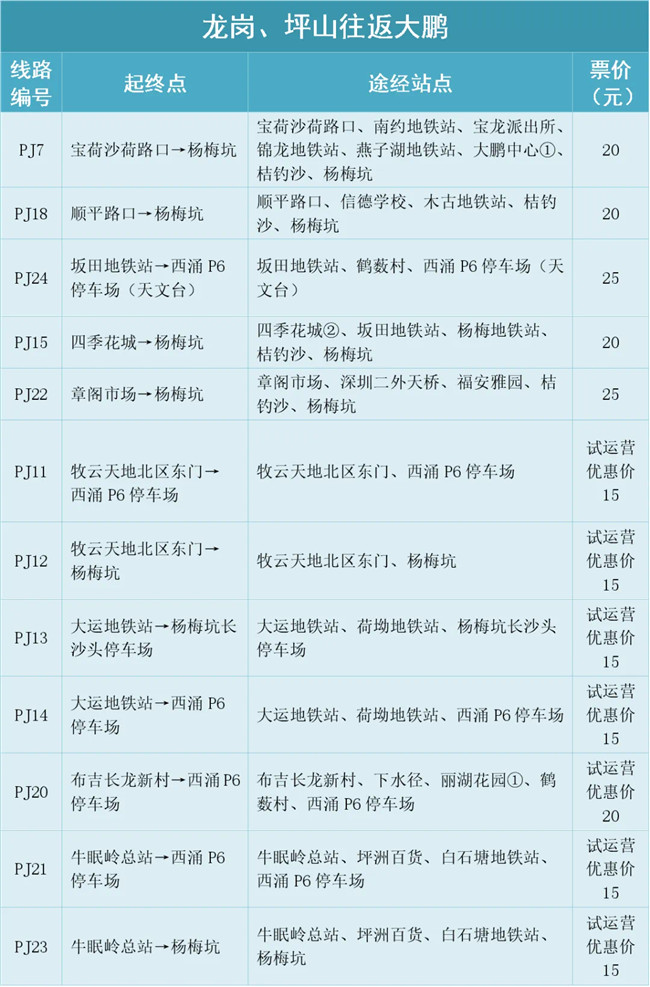 以上公交线路可通过现金、深圳通、e巴士小程序或APP(P字头线路)进行购票。