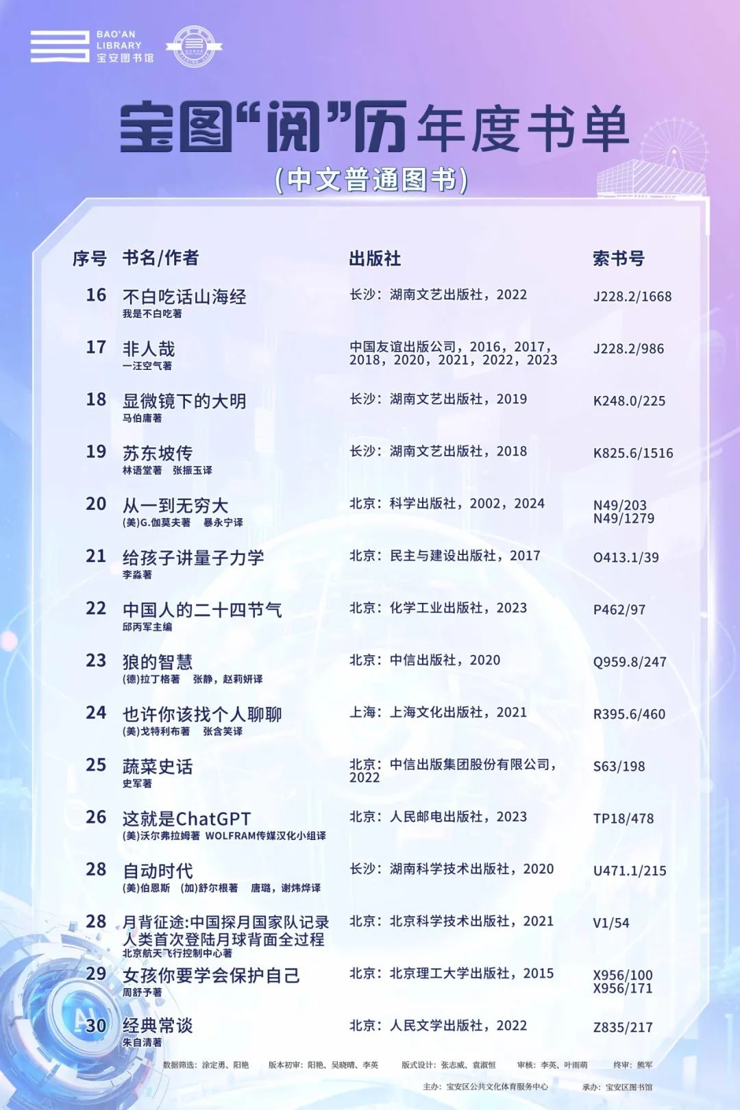 ●宝安:宝安图书馆年度书单出炉!