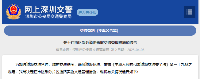●深圳市公安局交通警察局发布通告:4月9日起,在市区部分道路采取交通管理措施。