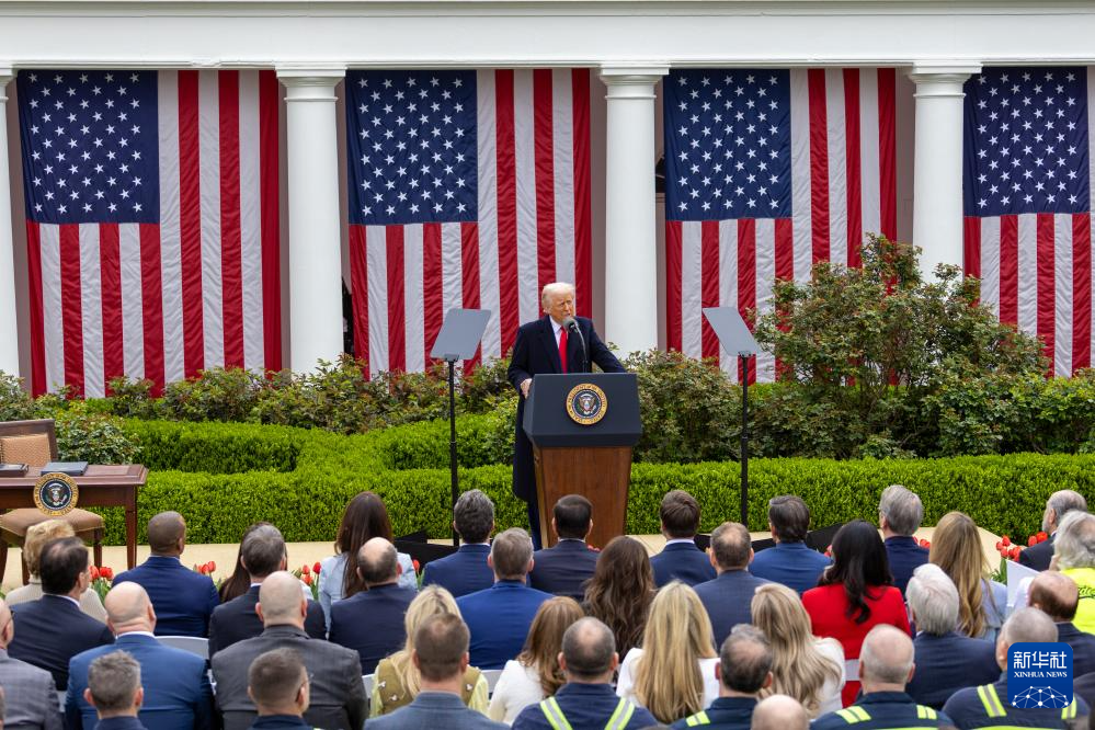 4月2日,美国总统特朗普在华盛顿白宫就关于所谓“对等关税”的行政令发表讲话。新华社记者 胡友松 摄