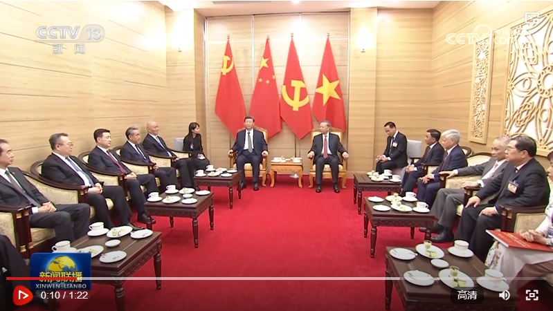 习近平指出,这次访问时间虽短,但活动丰富、成果丰硕。双方重申共同壮大世界社会主义事业的政治意愿,都期待朝着“六个更”总体目标全面推进两国战略合作,都表示抵御外部风险挑战,维护地区和平稳定和国际公平正义。我对中越关系发展前景充满信心。双方要全面落实这次访问成果,持续推进中越命运共同体建设。