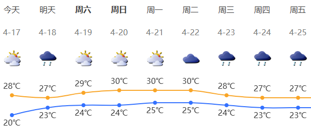 深圳今日多云;气温20-28℃;东南风2-3级;相对湿度60%-90%。