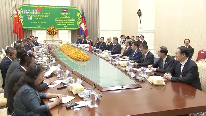 4月17日晚,国家主席习近平同柬埔寨首相洪玛奈在金边和平大厦举行会谈。两国领导人一致同意携手构建新时代全天候中柬命运共同体,宣布2025年为“中柬旅游年”。