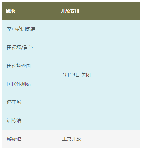 ● 龙华:4月19日龙华文体中心部分区域开放时间有调整。