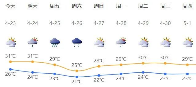 深圳今日多云,局地偶有短时阵雨;气温26-31℃;西南风3级;相对湿度65%-95%。