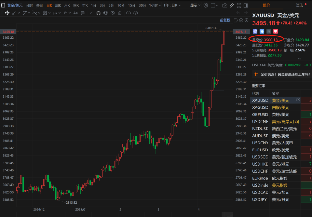 ● 现货黄金突破3500美元/盎司,再创历史新高,日内涨超2.2%,本月以来累计涨超12%。详情>>