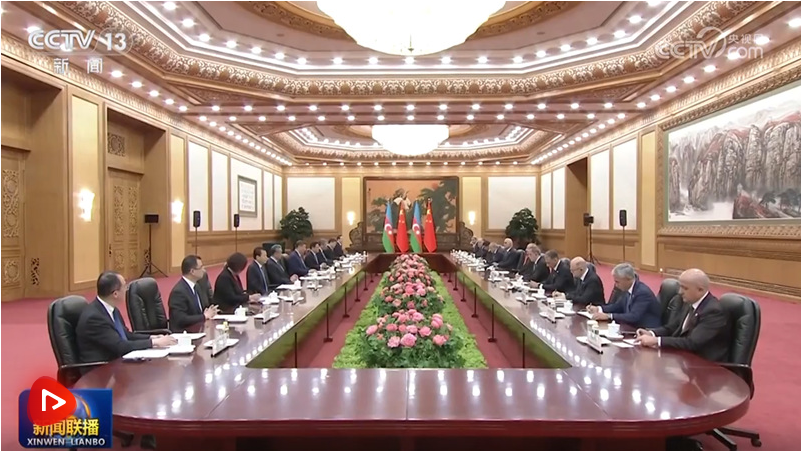 4月23日上午,国家主席习近平在北京人民大会堂同来华进行国事访问的阿塞拜疆总统阿利耶夫举行会谈。会谈后,两国元首共同签署《中华人民共和国和阿塞拜疆共和国关于建立全面战略伙伴关系的联合声明》。