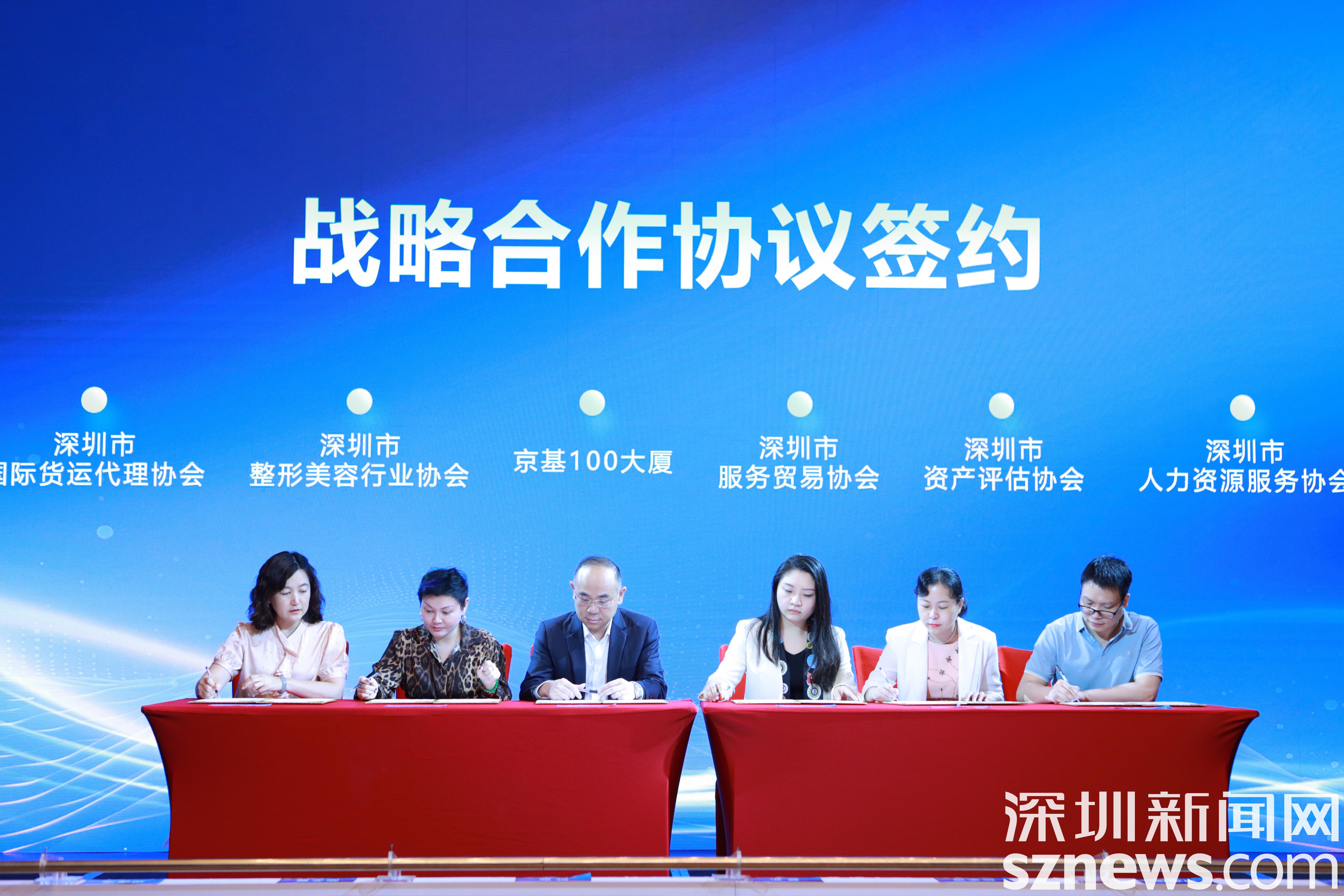 从“空间出租”到“生态运营”,罗湖将楼宇经济视为产业转型发展的重要依托,全力打造楼宇经济新高地。活动当日,为进一步发挥产业协同效应,提升资源整合能力,桂园街道在京基100大厦推动打造“全链产融共生圈”,邀请深圳市资产评估师协会、深圳市人力资源服务协会、深圳市整形美容行业协会、深圳市国际货运代理协会、深圳市服务贸易协会等5家机构与京基100大厦签署战略协议,将在该楼宇设立联络点,提供金融资产评估、跨境人才引进、医美产业链延伸、通关仓储资源、企业海外注册等专业化服务,日后将借助双方的品牌影响力及行业资源,围绕招商引资、业务合作、资源共享、生态共建等方面开展紧密合作。五家机构的进驻将促进构建跨行业资源互补服务链条,多方协作下,楼宇内企业可“足不出户”完成从融资、招工到跨境展业的全链条需求,真正实现“一栋楼即一条链”。
