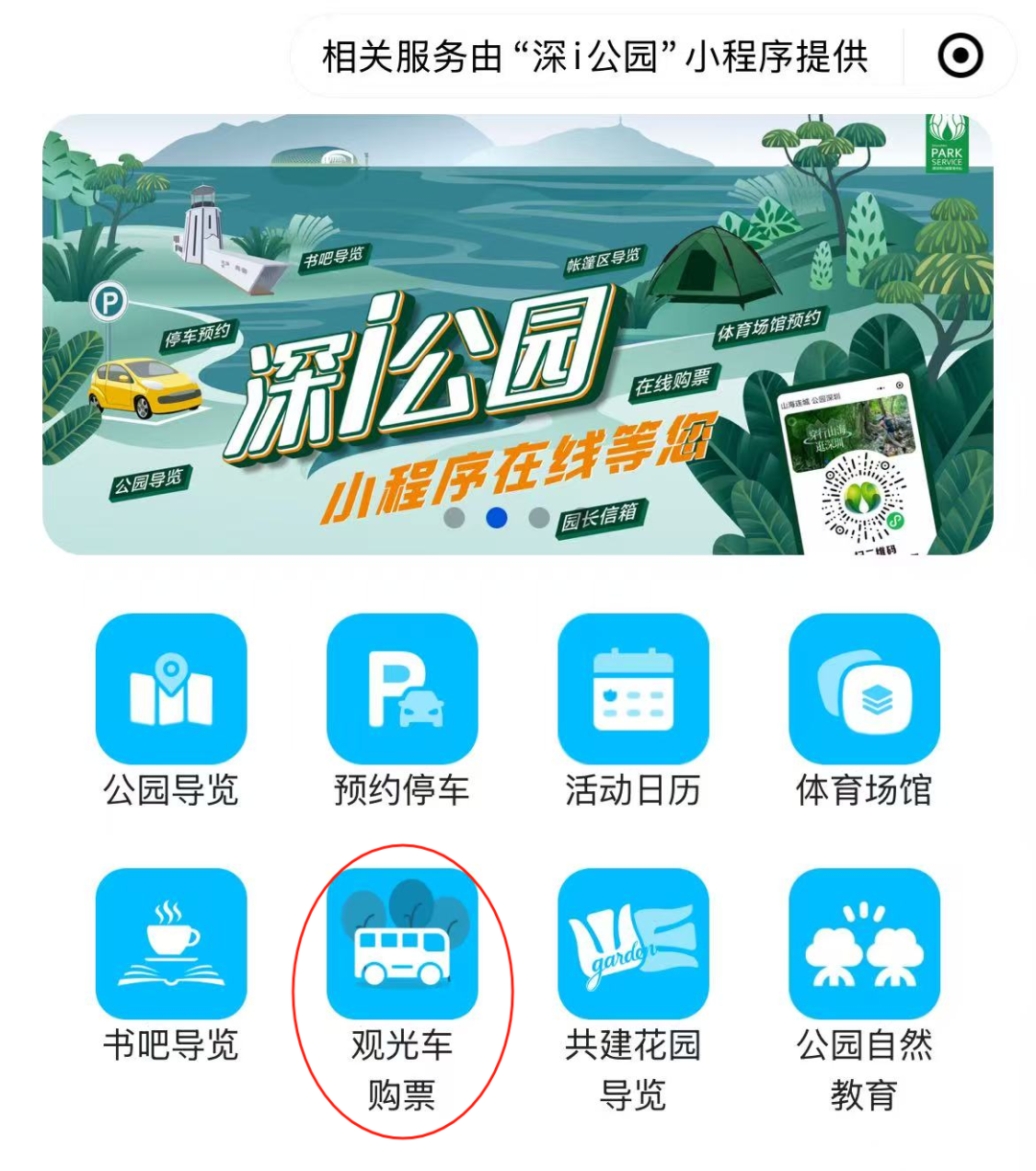● “深i公园”小程序正式上线“观光车购票”功能板块,覆盖莲花山公园、园博园深圳湾公园等10大热门公园,提供园内观光线路(观光车、观光小火车、观光巴士)等多样化服务。