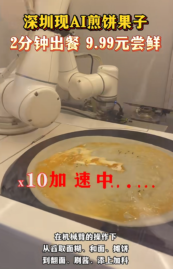 ● 深圳现AI煎饼果子!2分钟出餐,9.99元尝鲜。