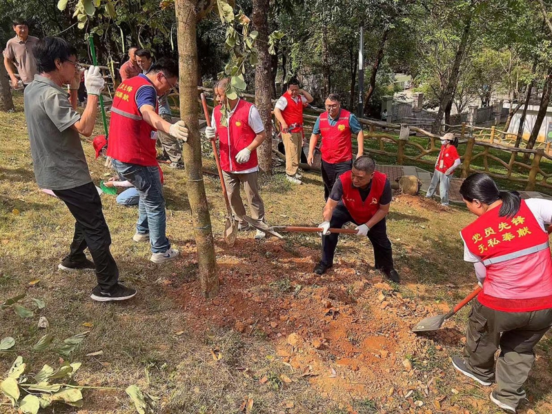 活动现场,党员佩戴中国共产党党员徽章、身着志愿者服装,与社区工作人员、志愿者紧密协作,分工有序开展植树工作。大家挖坑、培土、浇水、挂牌,干劲十足,现场一片热火朝天的劳动景象。经过努力,一棵棵新栽树苗在春风中挺立。