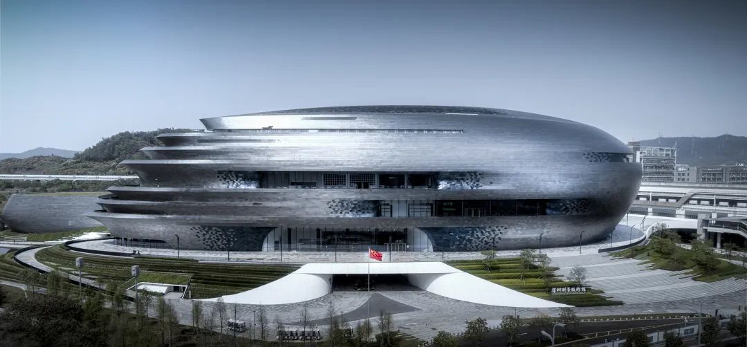 作为深圳市新时代文化设施之一,深圳科学技术馆建设用地面积6.6万平方米,总建筑面积12.83万平方米。场馆建筑以自然形态为灵感,深灰色金属外衣勾勒出“大飞船”造型,U 型布局融合未来设计与自然生态。38米超高中庭,重构立体空间叙事,完美诠释“科技、生态、艺术”理念,打造深圳科技文化新地标。