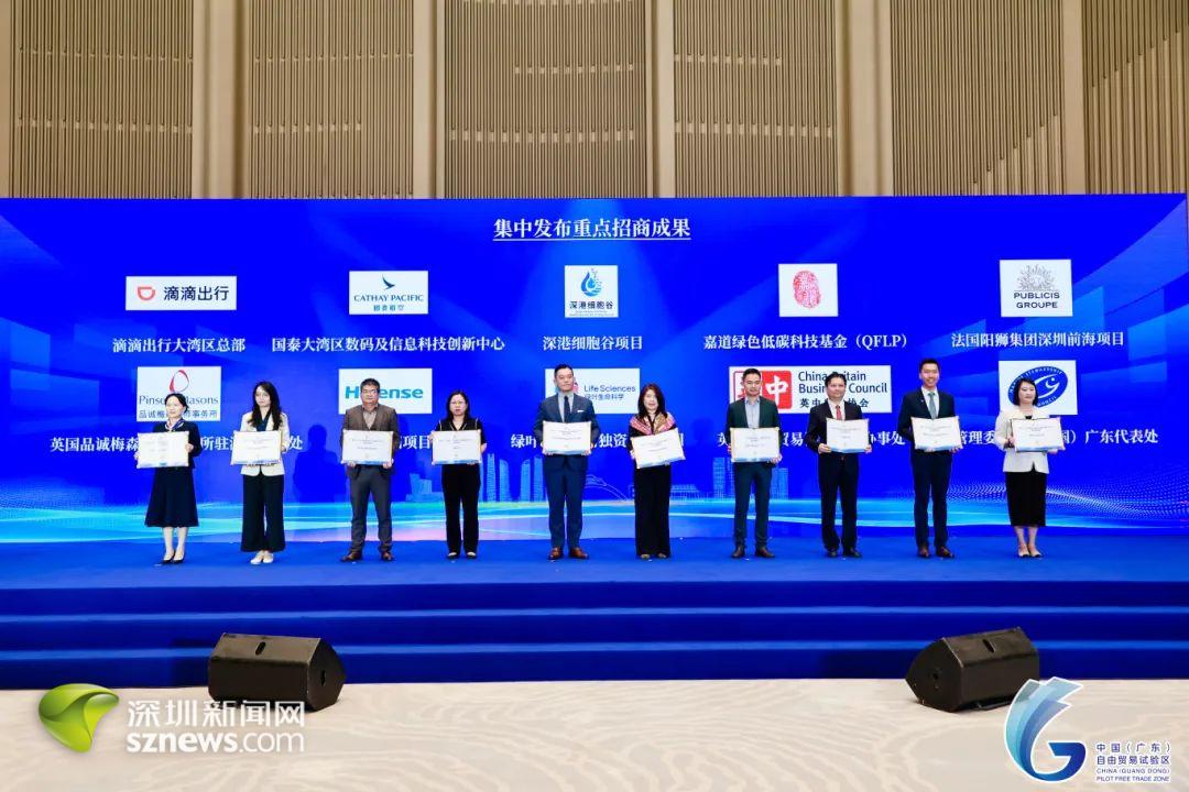 此外,一批近期重点招商成果也迎来发布,包括深港细胞谷、滴滴出行大湾区总部、海信集团项目、法国阳狮集团深圳前海项目、嘉道绿色低碳科技基金(QFLP)、国泰大湾区数码及信息科技创新中心、绿叶医疗外商独资医院,以及英国品诚梅森律师事务所驻深圳代表处、英国英中贸易协会深圳办事处、海洋管理委员会(英国)广东代表处等十大重大招商项目,体现了前海在金融业、现代物流业、信息服务业、科技服务业、专业服务业、公共服务业等现代服务业领域的产业集群成效。