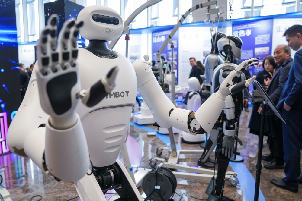 2025年4月29日,工作人员在“模速空间”调试人形机器人产品。就在4天前,4月25日下午,中共中央政治局就加强人工智能发展和监管进行第二十次集体学习。习近平总书记在主持学习时强调: