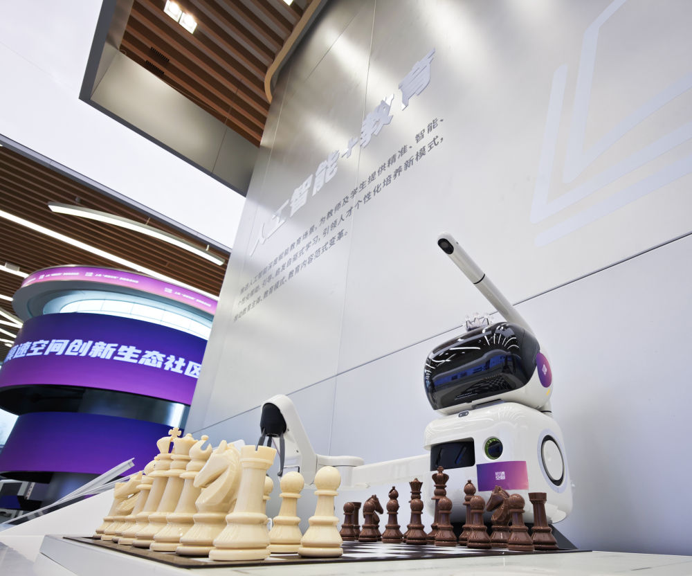这是在“模速空间”展示的一款AI下棋机器人,可以提供实现对弈、AI打谱等多项功能(2025年4月29日摄)。