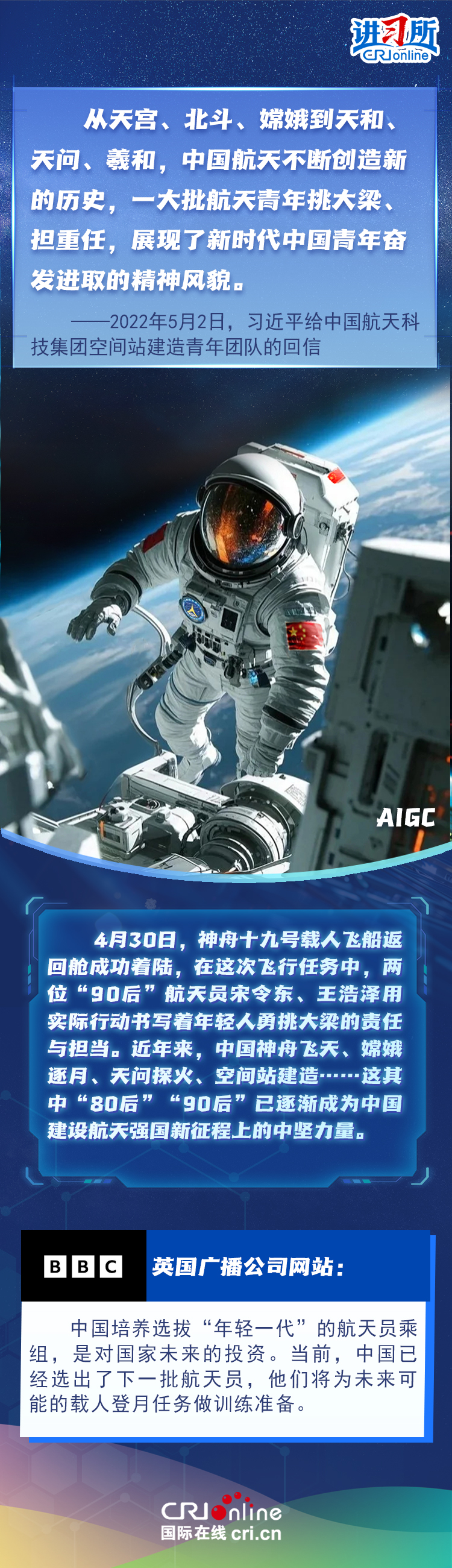 在中国“五四”青年节前夕,中共中央总书记、国家主席习近平在上海考察调研。在一场有关下一代智能体的主题沙龙现场,习近平勉励在场的年轻人,“人工智能是年轻的事业,也是年轻人的事业”“我们正在全面推进强国建设、民族复兴伟业,正是年轻一代展示才华、大显身手的好时候。实现中华民族的伟大梦想,寄希望于年轻人。”