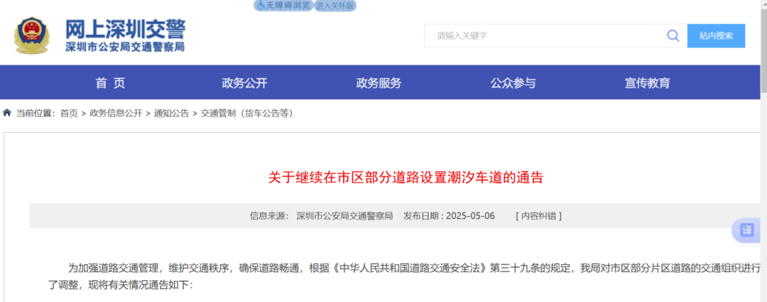 ●近日,深圳市公安局交通警察局发布《关于继续在市区部分道路设置潮汐车道的通告》。