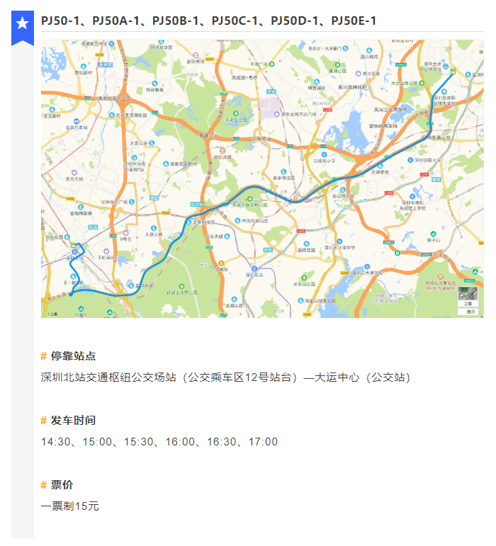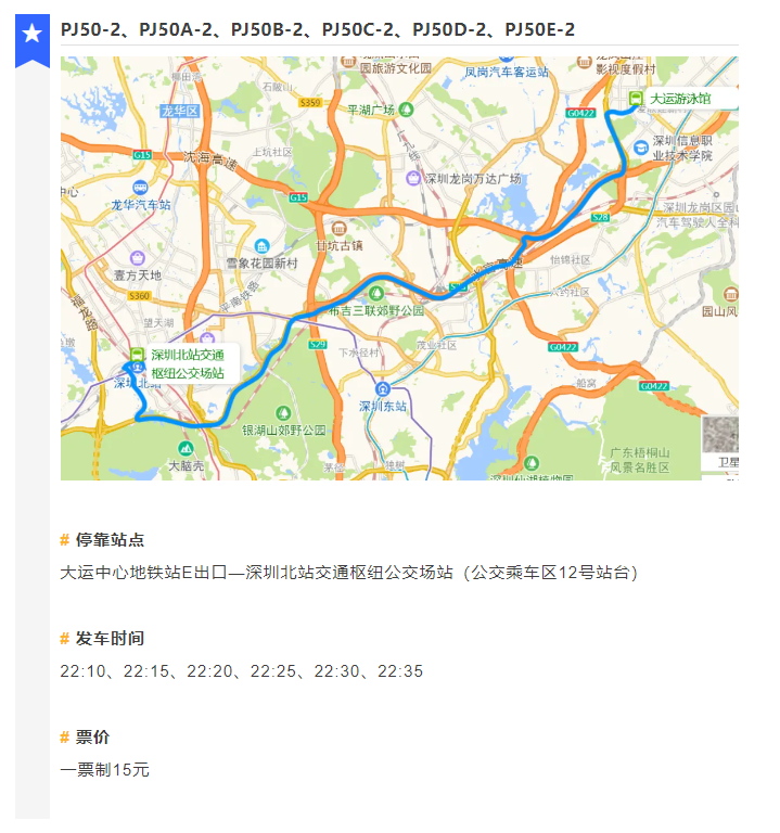 ● 深圳市东部公交e巴士将在5月16日、5月18日推出从深圳北站直达大运中心的“演唱会专线”,方便各地游客前往演唱会。