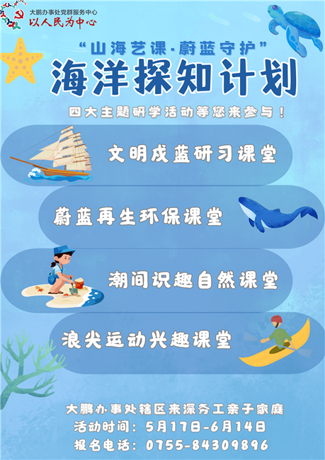 深圳新闻网2025年5月16日讯(记者 周维朕 通讯员 余尊鸿 李洁 曹小波)为帮助亲子家庭更好地融入大鹏,感受海洋文化的魅力,大鹏办事处党群服务中心精心推出“山海艺课·蔚蓝守护”海洋探知计划。此次活动依托大鹏新区丰富的海洋旅游资源,以海防文化寻踪、净滩行动、赶海体验、水上逐浪等形式,串联起大鹏的文旅特色,让亲子家庭沉浸式体验“海防历史+研学”“民宿文旅+志愿”“赶海文化+环保”“水上运动+拓展”等四大海洋主题研学游活动,在互动学习中共同探索蔚蓝海洋的奥秘!