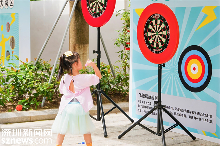 体育互动区飞镖擂台游戏。
