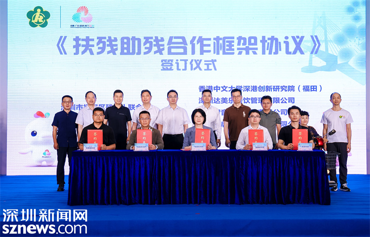 活动现场,福田区残联与香港中文大学深港创新研究院(福田)、深圳达美乐餐饮管理有限公司、深圳智音无碍科技有限公司、深圳市启明无障碍科技有限公司等单位正式签订《扶残助残合作框架协议》。此次合作依托粤港区域优势,正式引入科研机构力量,双方将在残疾人康复、无障碍建设、残疾人就业等领域开展深度合作,通过共享经验、共用资源、共办活动,实现政企双方优势互补、双向赋能,携手为残疾人创造更加美好的生活。