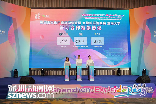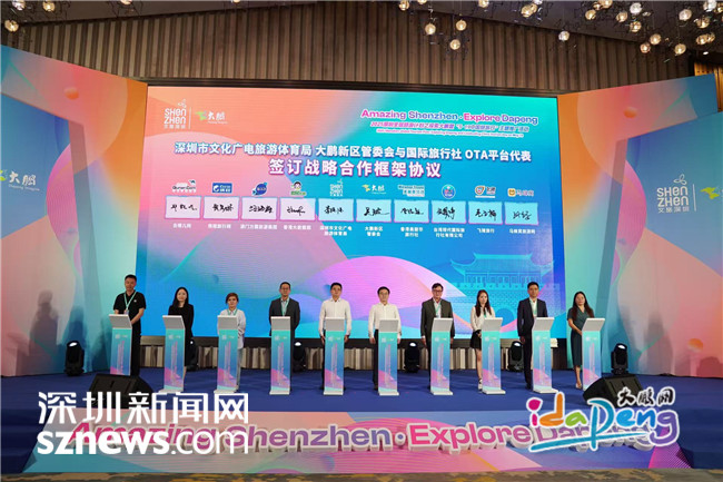 深圳市文化广电旅游体育局、大鹏新区与国际知名旅行社、头部OTA平台代表签订战略合作框架协议,深圳夏日惊喜20条促消费措施、第二十一届文博会打卡线路正式发布。同时,市文化广电旅游体育局、大鹏新区与暨南大学签订合作框架协议,“深圳旅游新业态研究基地”正式揭牌成立,“百万英才汇南粤”高校文旅人才招聘会正式举行,市文化广电旅游体育局联合抖音生活服务共同发起的“域见美好深圳”直播嘉年华活动也同步开启。人人都是深圳、大鹏的“文旅推介官”,人人共享深圳、大鹏旅游之魅。