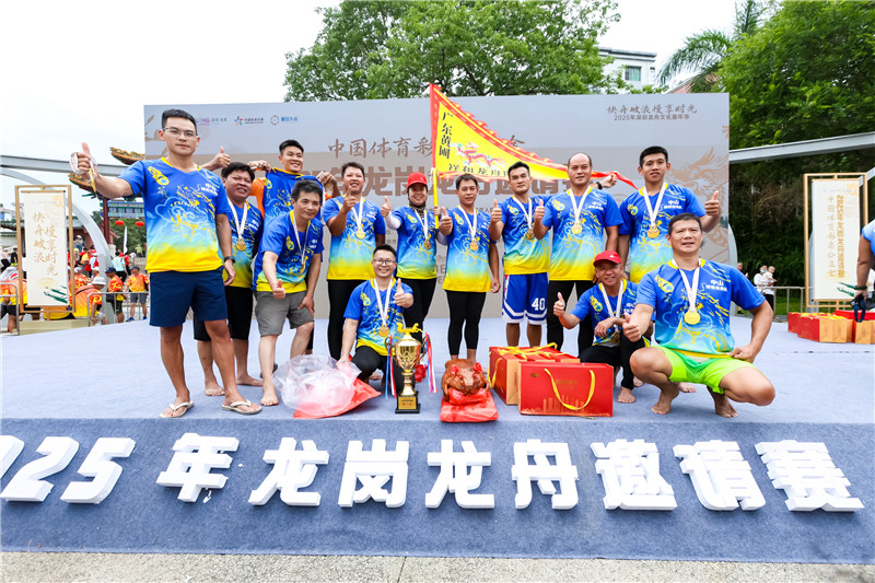 在这场竞相角逐中,赛手们万众一心,跃浪争先,向着终点冲刺。经过两轮预赛、决赛的激烈角逐,最终,凭借出色的团队协作与爆发力,广东黄圃祥和龙舟队获得第一名,澳门无为咖啡龙舟队和珠海天马龙舟队分获第二名和第三名。