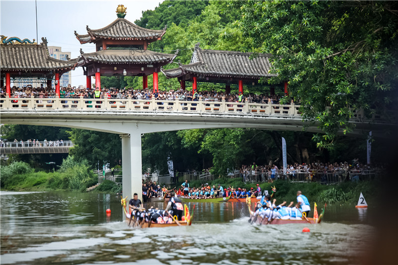 开幕式上,龙岗河畔彩旗飘扬。龙舟点睛仪式传统环节与舞麒麟、客家传统舞蹈等特色展演节目交相辉映,赢得现场观众不断喝彩。