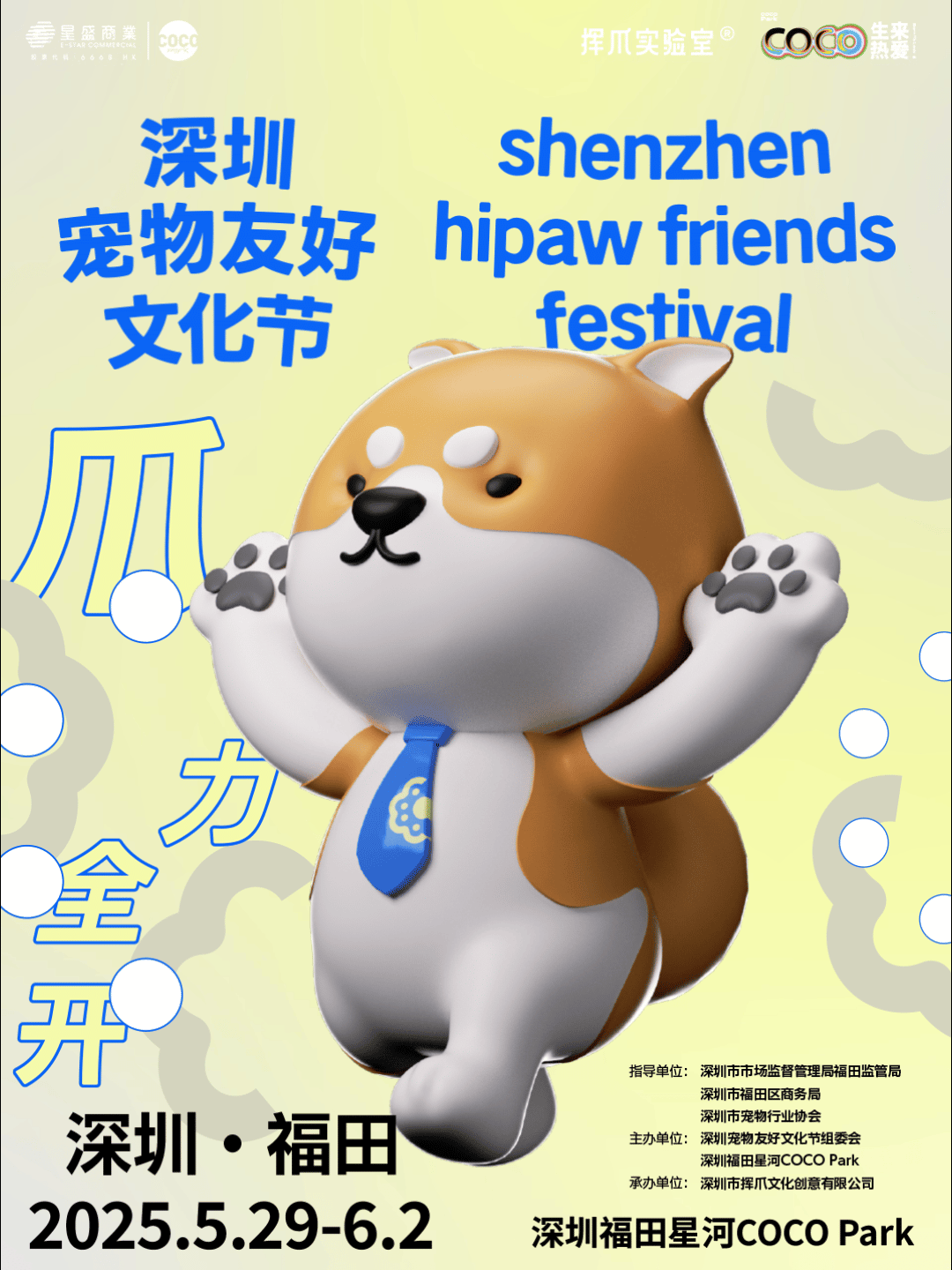 ●首届深圳宠物友好文化节将于5月29日-6月2日在福田星河COCO Park举办。