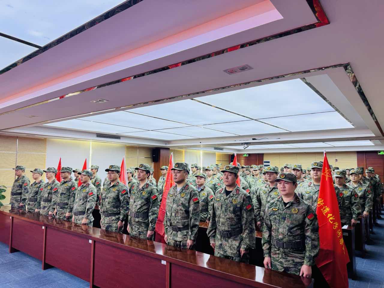 大会在雄壮的《中国人民解放军军歌》中拉开帷幕,全体人员庄严肃立,会议先后宣读了民兵干部任职命令、《基干民兵出入队的通知》,并组织现场点名。全体基干民兵在街道人武部负责人吴健伟的带领下庄严宣誓,铿锵誓言回荡会场,彰显了新时代民兵听党指挥、能打胜仗的坚定信念。