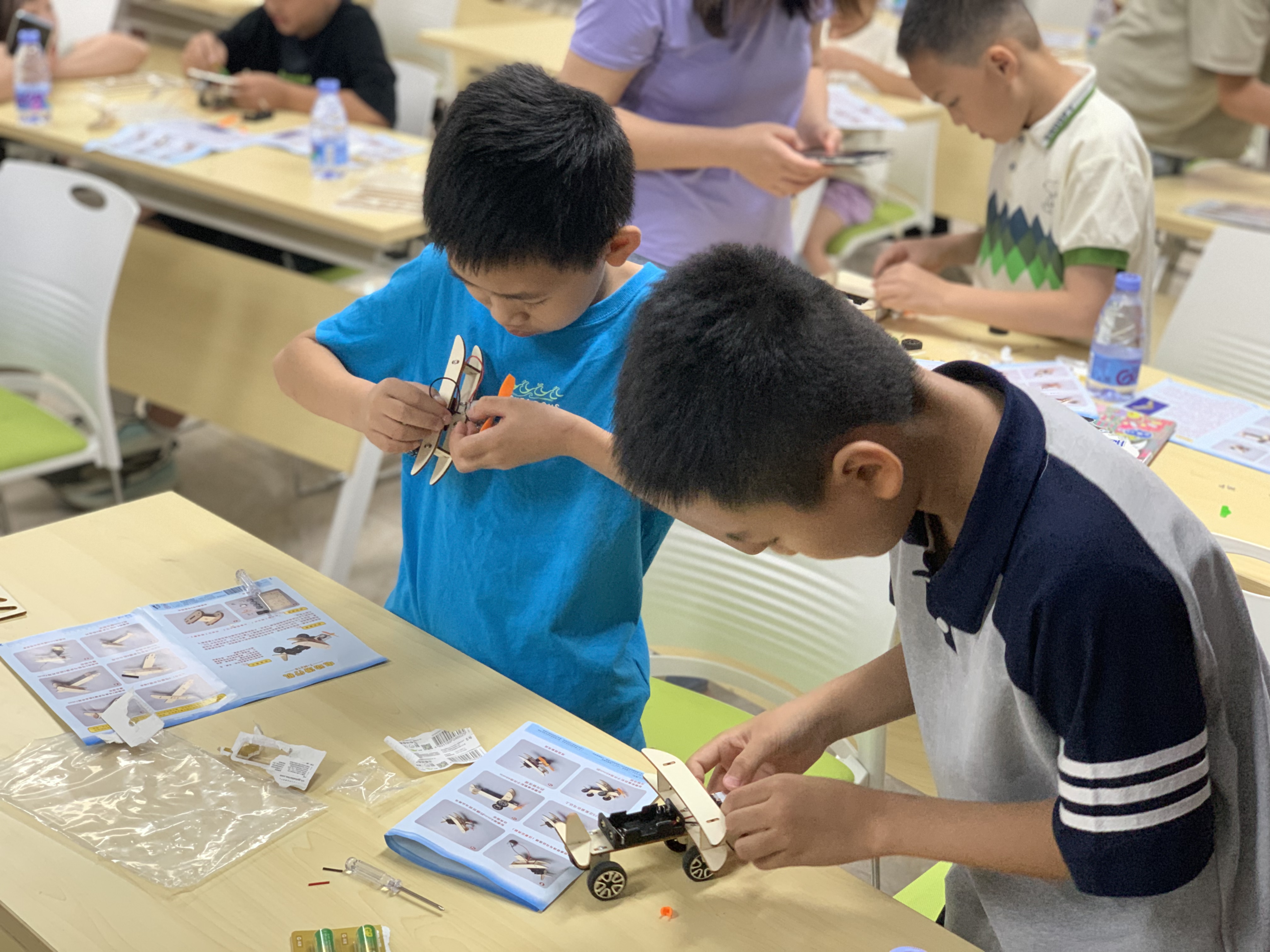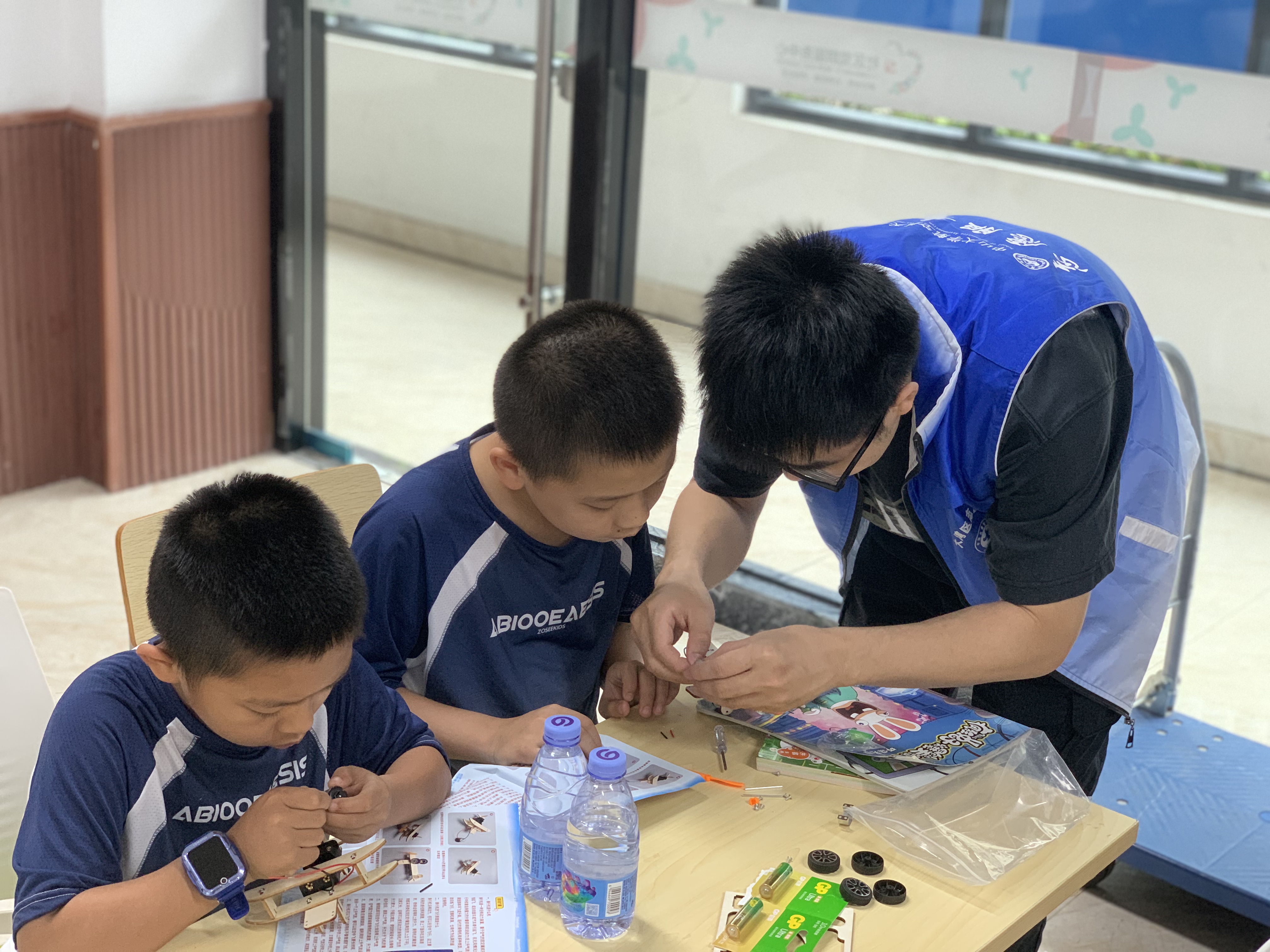 在动手实验环节,孩子们摇身一变成为“小小飞机工程师”,在志愿者的指导下,参与“电动滑翔飞机”模型制作。从机翼组装到电路连接,每一个步骤都需要细致操作。过程中,孩子们时而专注思考,时而相互交流协作,在失败与尝试中不断积累经验。当亲手制作的飞机模型成功滑翔而起,现场响起阵阵欢呼,满满成就感绽放在每一张稚嫩的笑脸上。
