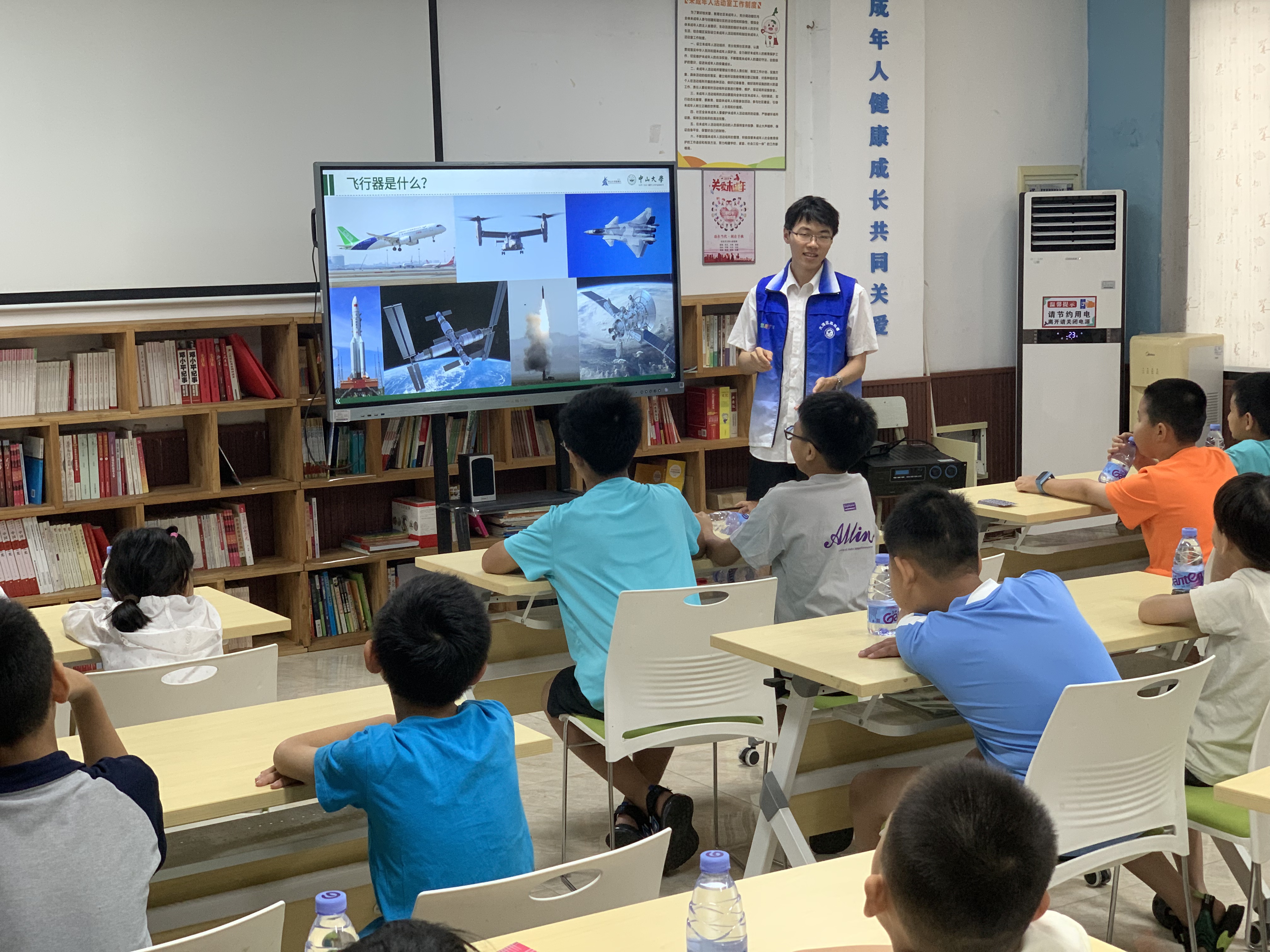 活动伊始,来自中山大学航空航天学院的学生志愿者化身科普导师,带来“飞机的故事”主题宣讲。通过展示生动的历史图片、播放趣味动画,带领孩子们回溯航天发展史,从莱特兄弟的首次试飞壮举,到现代民航客机翱翔天际,一个个故事激发着孩子们对蓝天的无限向往。当志愿者用简单易懂的语言揭秘飞机升力的原理时,孩子们听得全神贯注,纷纷踊跃举手提问,现场互动氛围热烈。