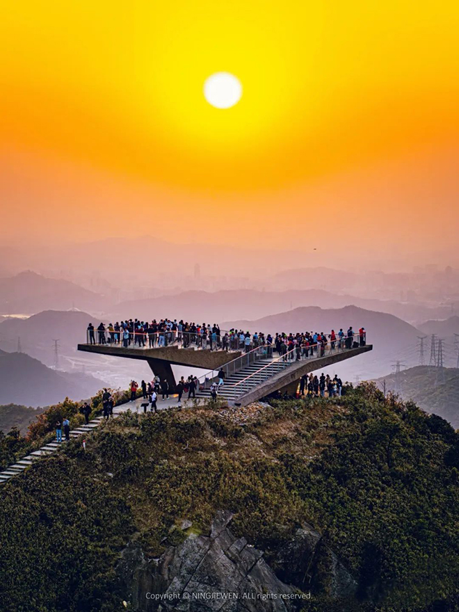 “站在看台上,吹着山风,看着眼前壮阔的山海景色,所有的疲惫都消失了,感觉太治愈了。”周末特意从福田赶来登山的游客韩女士难掩兴奋。和朋友结伴而来的大学生小刘也笑着说:“我们早就听说梅沙尖风景好,这次开放了城市看台,就想着一定要来打卡。这里的设计太有创意了,和周围的山景毫无违和感,随手一拍都是大片,发朋友圈收获了好多点赞。”