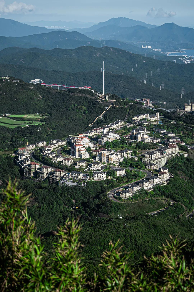 梅沙尖山脉连绵,鹅公髻、园山、大王顶等山头错落有致。登上山顶,盐田城区的繁华、海湾港口的繁忙、大小梅沙的秀美以及三洲田风景区的静谧尽收眼底,向东更可俯瞰几乎整个东部华侨城景区,山南脚下,大梅沙海滩的金色沙滩与碧蓝海水相映成趣。