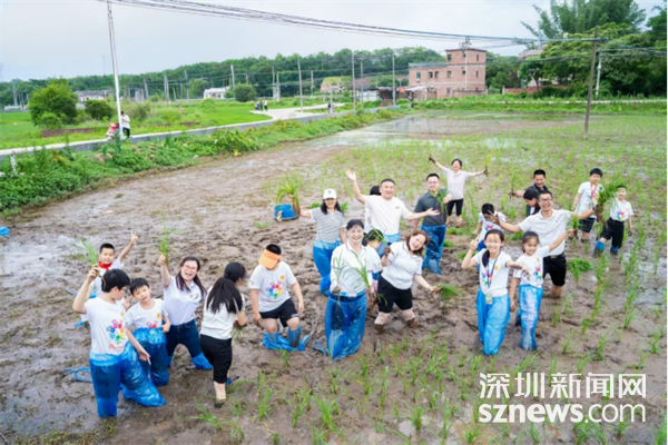 仪式结束后,大家开展互动游戏,校园内洋溢着欢声笑语。活动尾声,团队前往官陂村体验插秧,感受农耕艰辛与乐趣。第二天,团队前往兴宁市水口红色教育基地参观学习,在刘光夏革命烈士纪念馆,大家聆听先辈事迹,小志愿者们积极交流感悟,党员志愿者引导他们思考红色精神内涵。